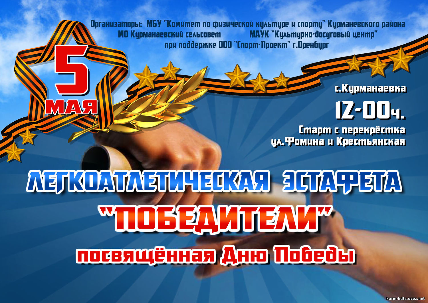 5 мая в 12-00 ч. в с.Курманаевка в рамках празднования Дня Победы пройдёт легкоатлетическая эстафета "Победители".