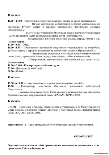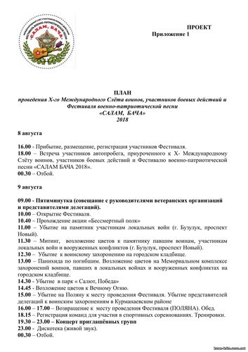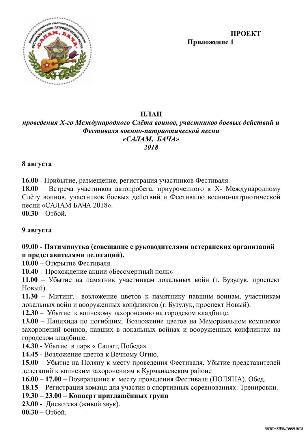 С 8 по 12 августа в Бузулукском районе на поляне Елшанского водохранилища пройдёт X-ый Международный Слёт воинов, участников боевых действий и Фестиваль военно-патриотической песни «САЛАМ, БАЧА»- 2018.