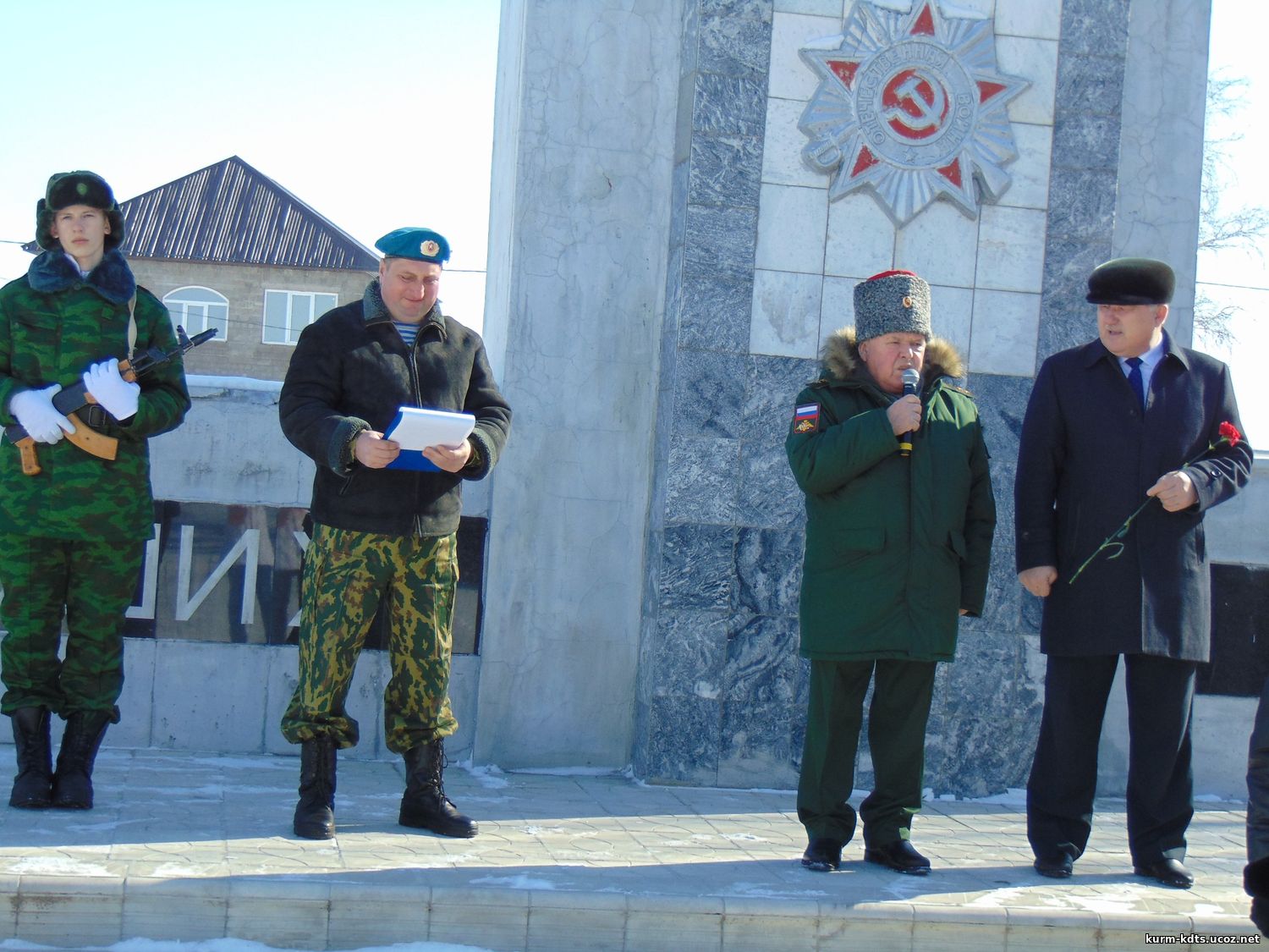 13 марта у мемориала Памяти павших состоялся митинг, посвященный Дню Защитника Отечества с участием ветеранов Оренбургской областной организации ОООВ "Российский союз ветеранов" (председатель Воронин А.П.), главы района Ю.Д. Коляды, почетных гостей и учащихся МАОУ "Курманаевская СОШ" . После этого, в целях патриотического воспитания подрастающего поколения, в образовательных учреждениях Курманаевского района ветеранами Оренбургской областной организации были проведены Уроки мужества с показом кинофильма, посещением музеев и музейных комнат. | |
