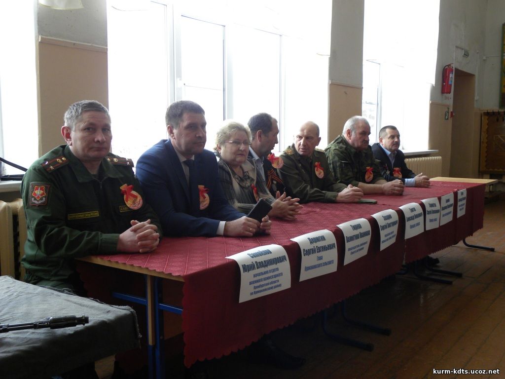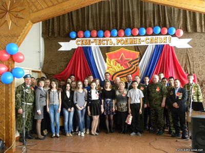 На мероприятии присутствовали С.Е.Дерюгин, Ю.В.Самойлов, В.И.Тюрина, а также воины-интернационалисты и офицеры запаса: С.В. Захаров, С.В. Беспалов, А.Н. Ганотов, С.Н. Сироштан. Встреча получилась насыщенной. Старшеклассники подготовили презентации о нашем земляке Ю.В. Ерёмине, погибшему в Афганистане; рассказали о современном состоянии Вооружённых Сил РФ. Отвечая на вопросы ребят, поделился своими воспоминаниями о службе в Афганистане С.В. Захаров. Порадовало выступление А.Н. Ганотова, исполнившего песни под гитару. Общий патриотический настрой поддерживало выступление вокалисток под руководством Ю.С. Матвейчук. Также в рамках Урока мужества проходили конкурсы: рисунков "Страницы Афганской войны" среди 1-4 кл., и декоративно-прикладного творчества "Наша армия самая сильная!" среди 5-8 кл. Победители получили грамоты и памятные подарки из рук Главы Курманаевского сельсовета Дерюгина С.Е. и директора МАУК "КДЦ" Коннова В.П. | |